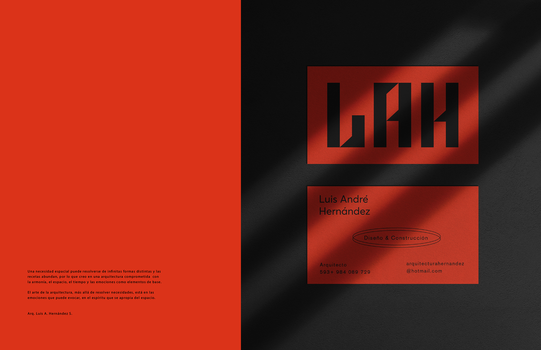 Branding project for the design & construction studio of the architect Luis André Hernández.